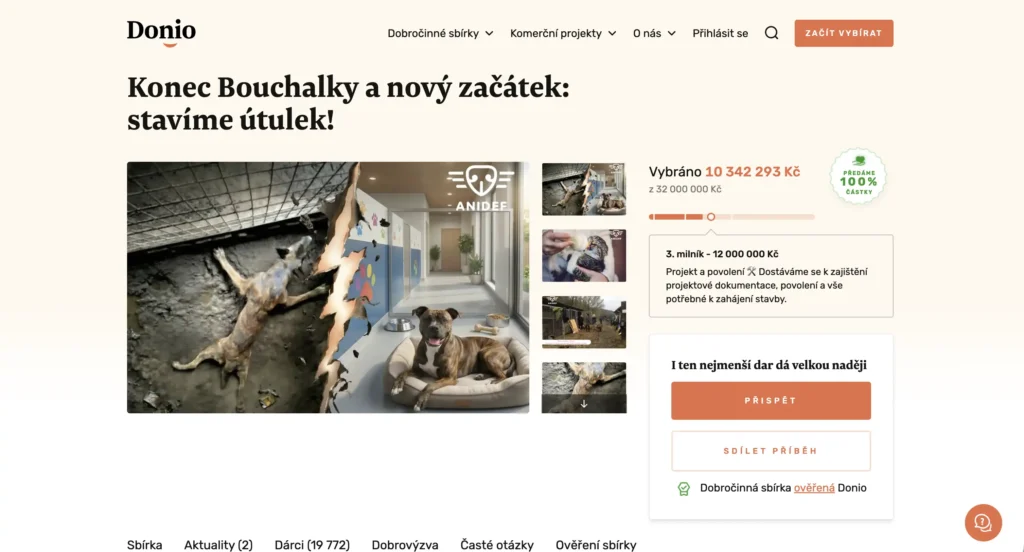 Pomoc nemusí mít jen podobu štědrého daru. Smysl má i menší příspěvek, pravidelná podpora, sdílení sbírky nebo prosté upozornění na to, že takový projekt existuje. Donio u kampaně uvádí jednotlivé milníky od prvního milionu přes nákup pozemku až po projektovou dokumentaci a samotné stavební práce, takže dárci dobře vidí, kam jejich peníze směřují.